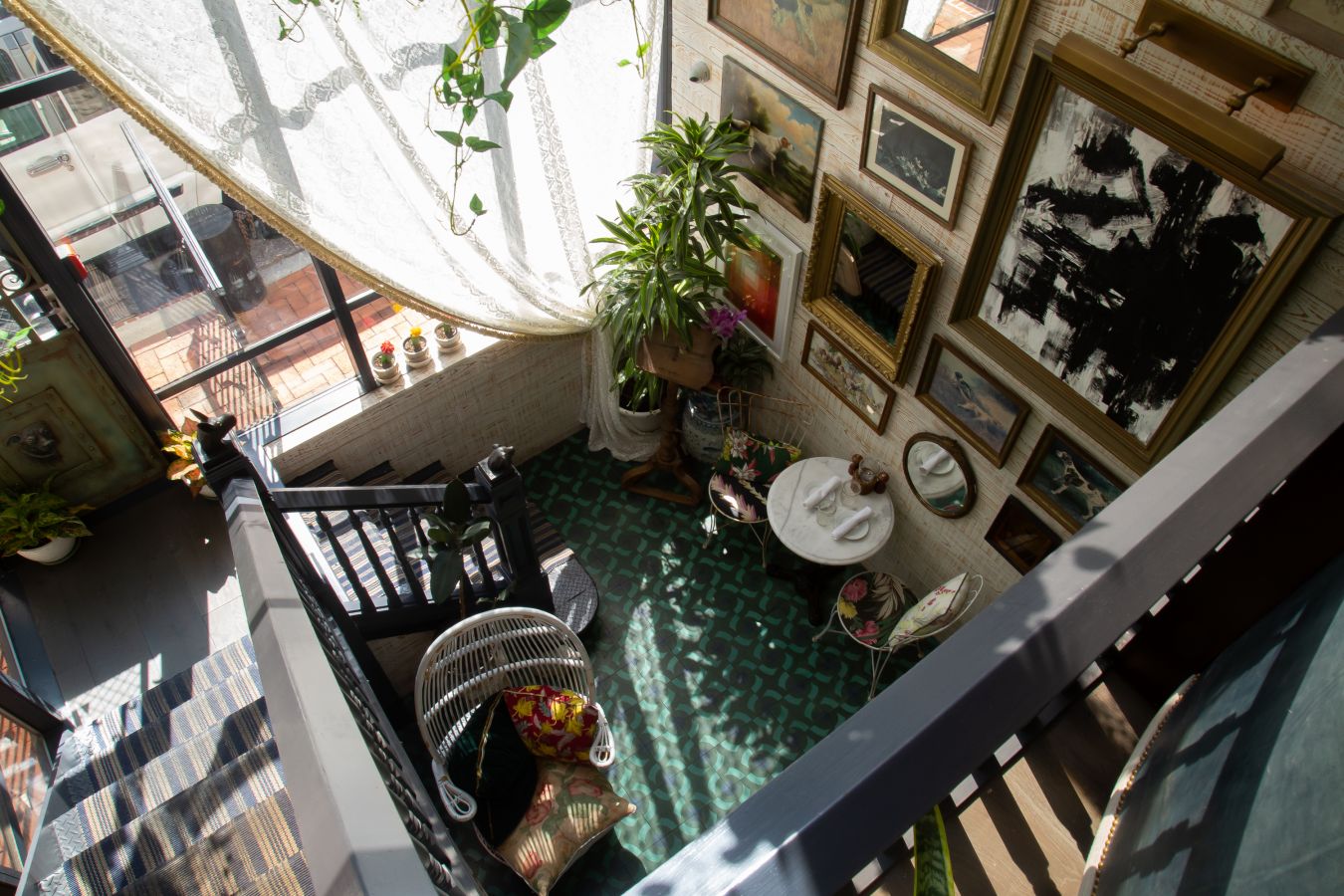 The charming brownstones were completely renovated, providing a variety of dining rooms with whimsical dog decor, fixtures, and stunning artwork. Dine in the vibrant Living Room or the casual and airy Porch with reclaimed wood and birdhouses. The noble Parlor, or intimate Tea Room with plush seating and a lively ceiling. The Oak Room features a massive marble table for ten, and the Den boasts wall-lined dog portraits. Downstairs is the Wine Cellar, which features a wall of wine barrels, hanging corkscrews, and regal dog portraits, perfect for private parties. The newly expanded brownstone includes the Parlor Bar and Study, and the intimate Solarium downstairs with hanging greenery.